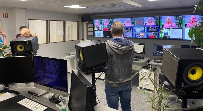 Während eines Rundgangs in den neu renovierten Büroräumen, erhielten wir vielfältige Informationen und Einblicke in die praktische Arbeit des Senders. So werden z.B., zu unserem großen Erstaunen, jegliche der ca. 3500 monatlichen Anfragen von einem Team persönlich beantwortet. Natürlich wurde auch das eigene kleine Studio, in der ehemaligen Tiefgarage des Hauses, ausführlich inspiziert, wobei sich Einzelne als Moderatoren ausprobierten.